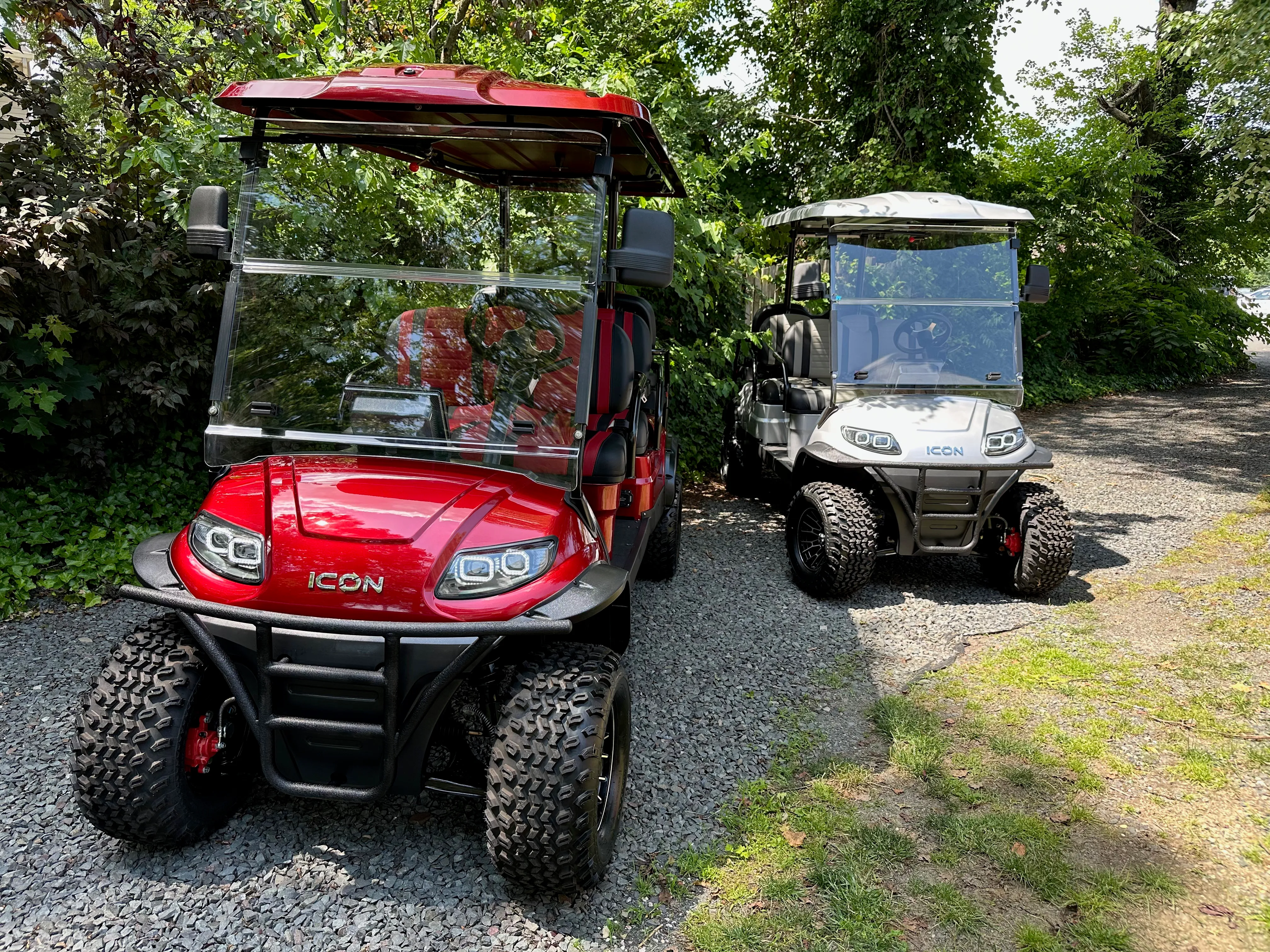 We currently offer the 2025 ICON i60L — a lifted, modern 6-passenger golf cart equipped with a powerful lithium battery for longer range and better performance. It’s street-legal, comfortable, and perfect for cruising. Each vehicle is regularly serviced and maintained to ensure top performance and safety.